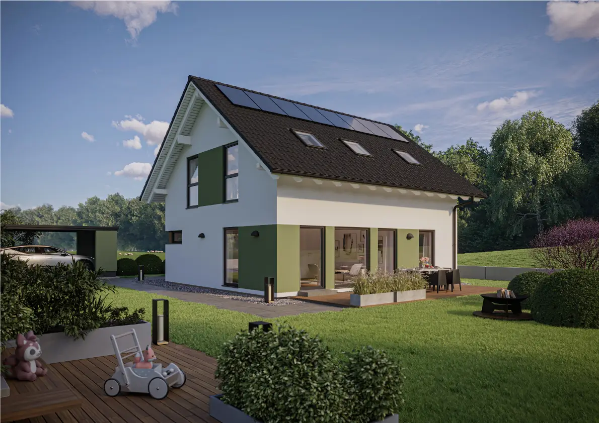 149,20 – 150,80 m² Hausart Dachart Dachneigung Kniestock** Nettoraumfläche EG Nettoraumfläche OG Nettoraumfläche Gesamt Satteldach 38° / 25° 100 cm / 166 cm 75,16 – 75,74 m² 73,76 – 75,06 m² 149,20 – 150,80 m² Dachart Satteldach Dachneigung 38° / 25° Kniestock** 100 cm / 166 cm Nettoraumfläche EG 75,16 – 75,74 m² Nettoraumfläche OG … Weiterlesen