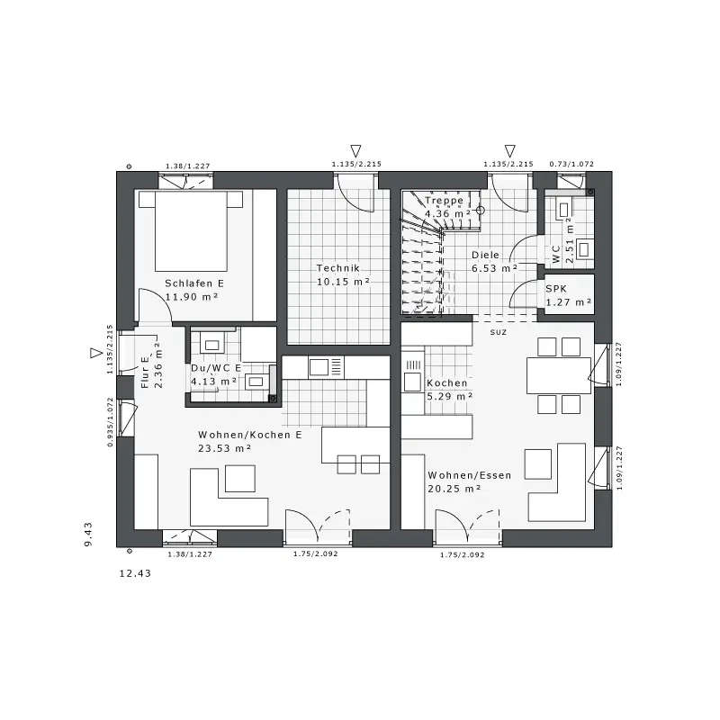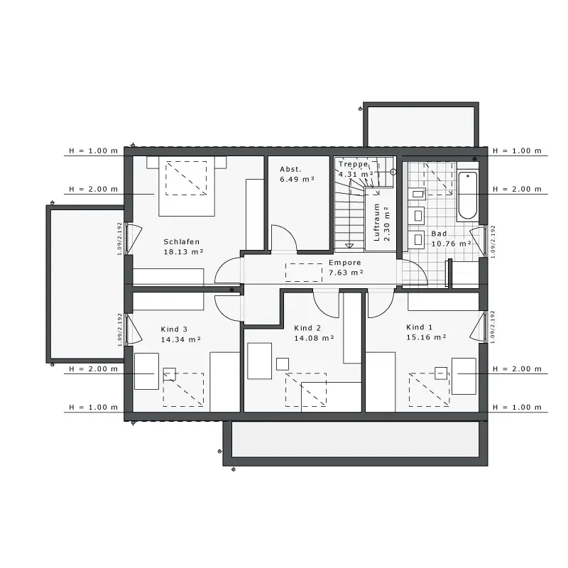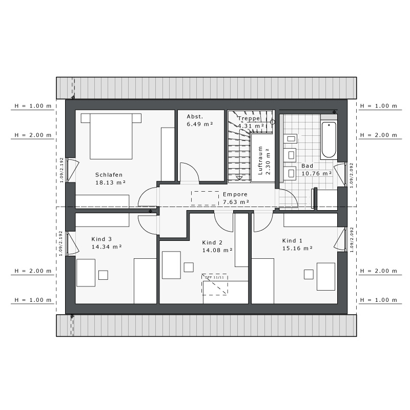 - Satteldach 38° mit 100cm Kniestock