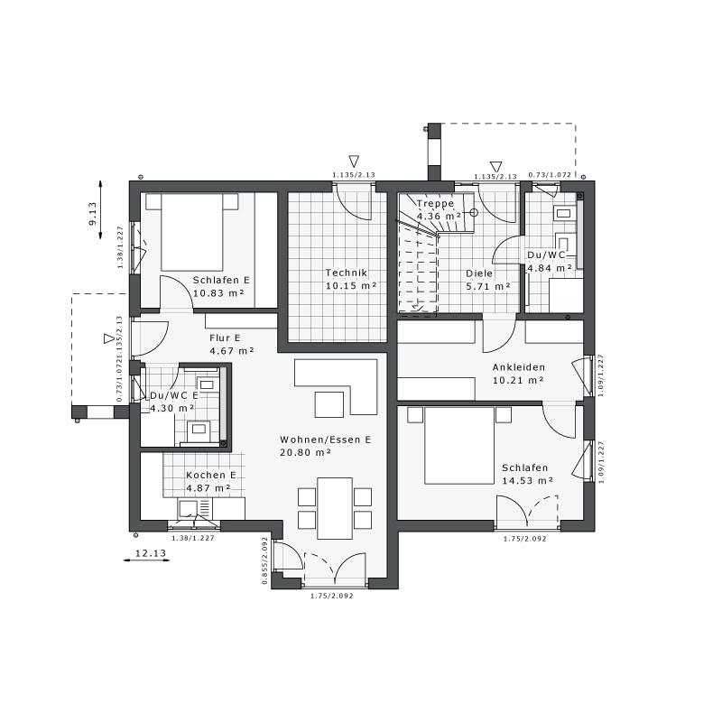 - Eingangsüberdachung E1 L-Design mit Öffnung Hauptwohnung