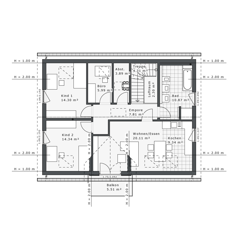- Rechteck-Erker E1 Balkon